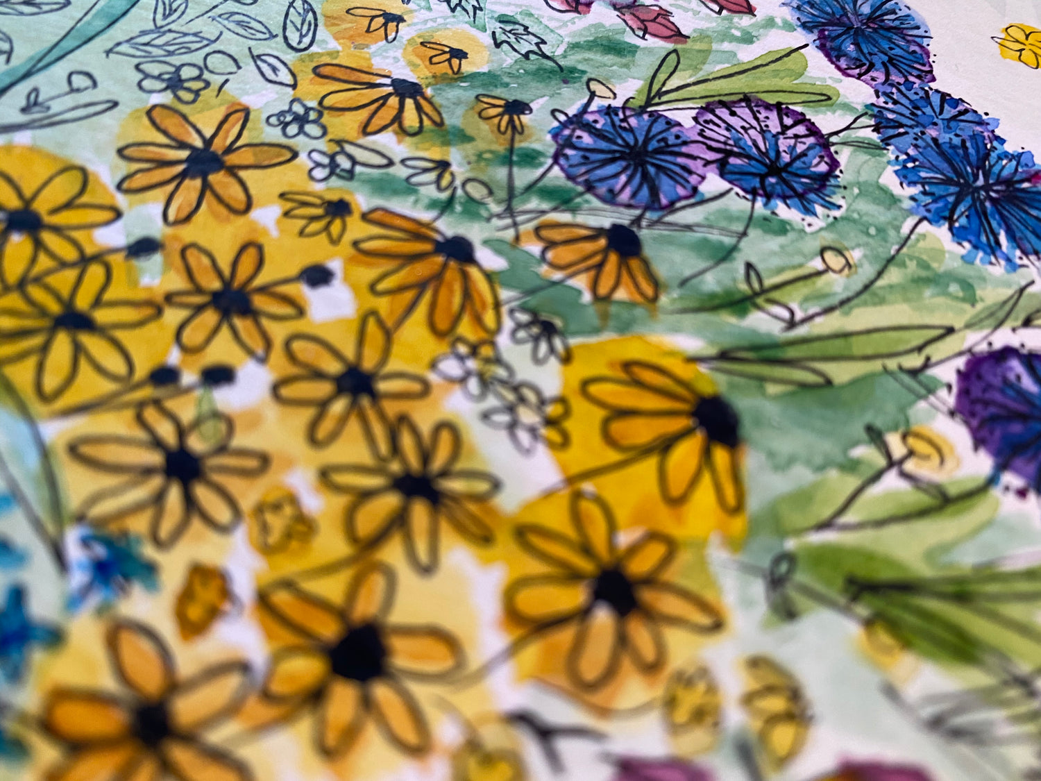 Vibrant abstract landscapes and detailed floral landmarks. This mixed media and watercolour...