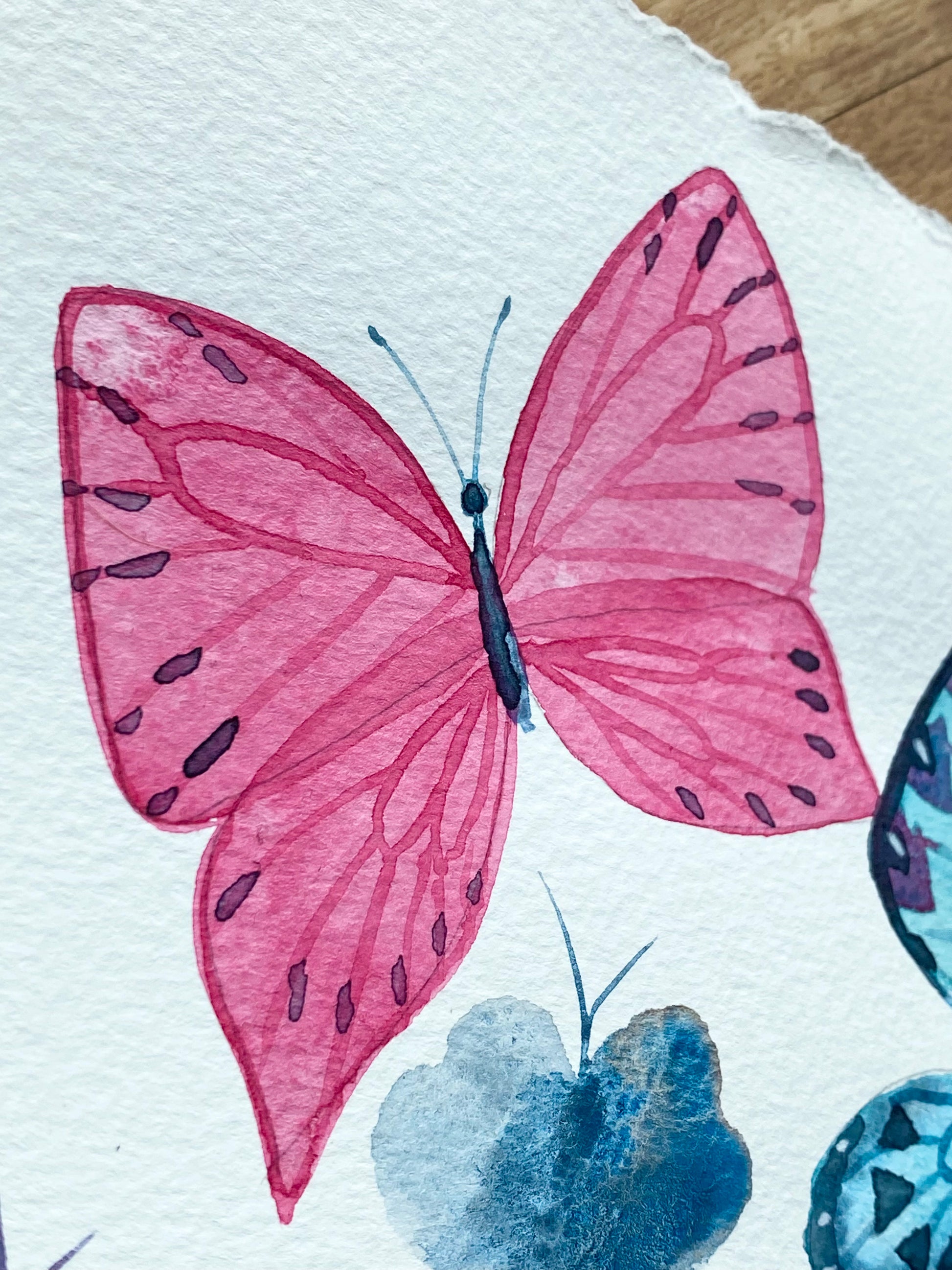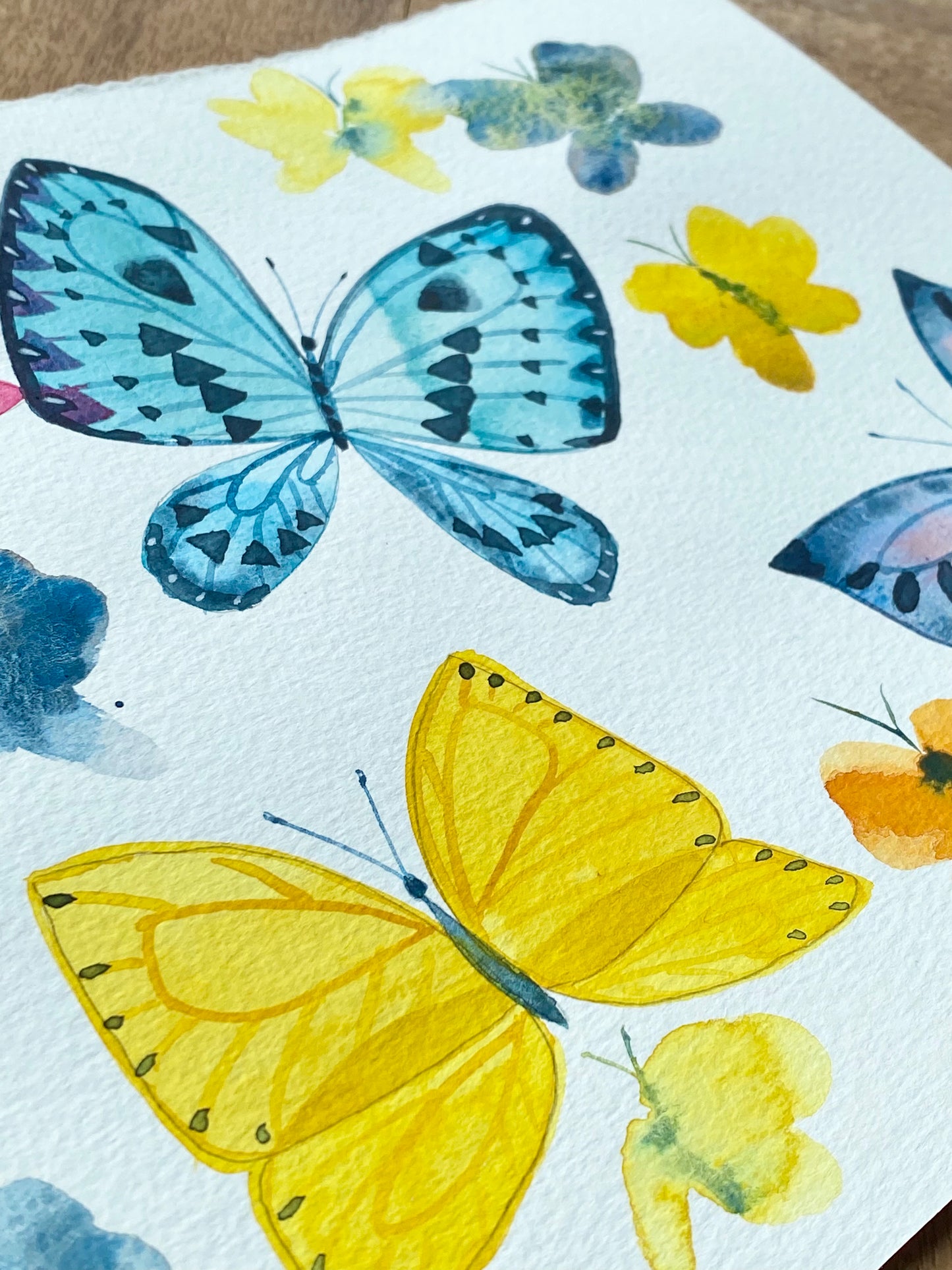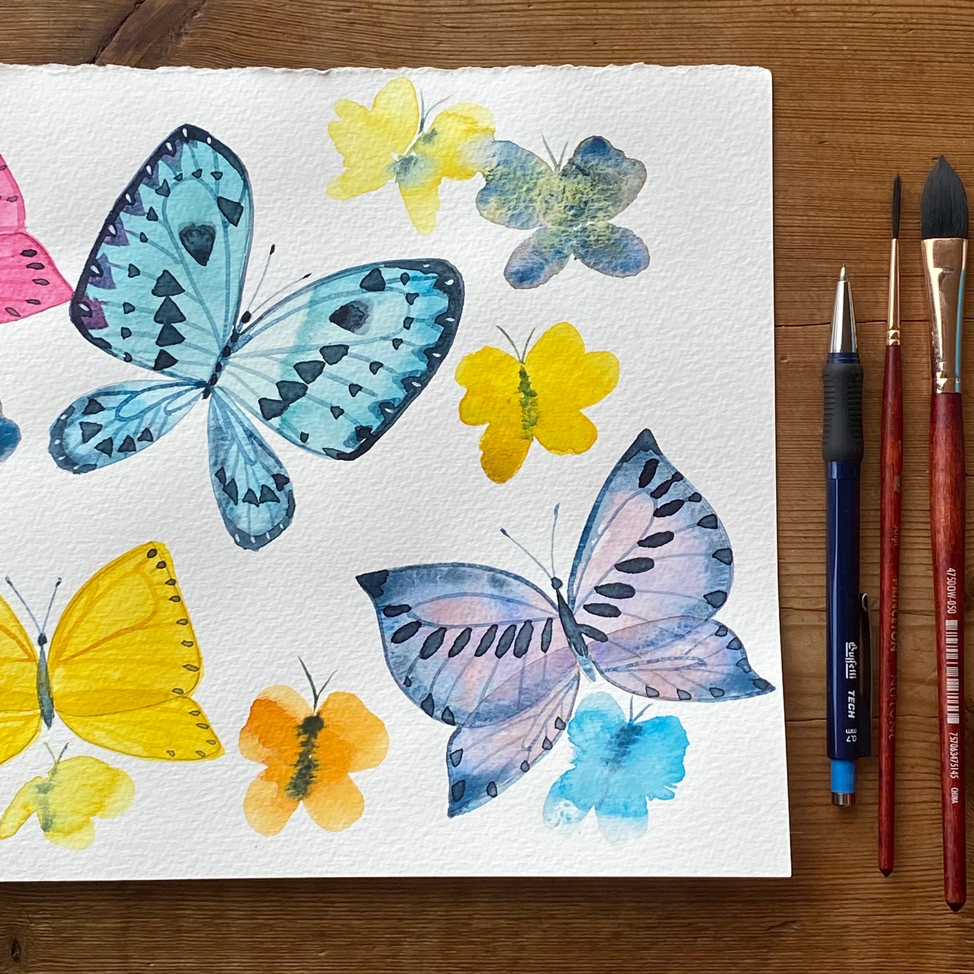 This tutorial will show you how to create very loose butterfly shapes and also break down how to create a detailed butterfly painting with the effect of transparent wings overlapping. I even give a little hack for how to sketch your butterflies at the beginning which some people find tricky. We even do this whilst not getting too tied up in creating 'perfect' and focussing on enjoying the process!