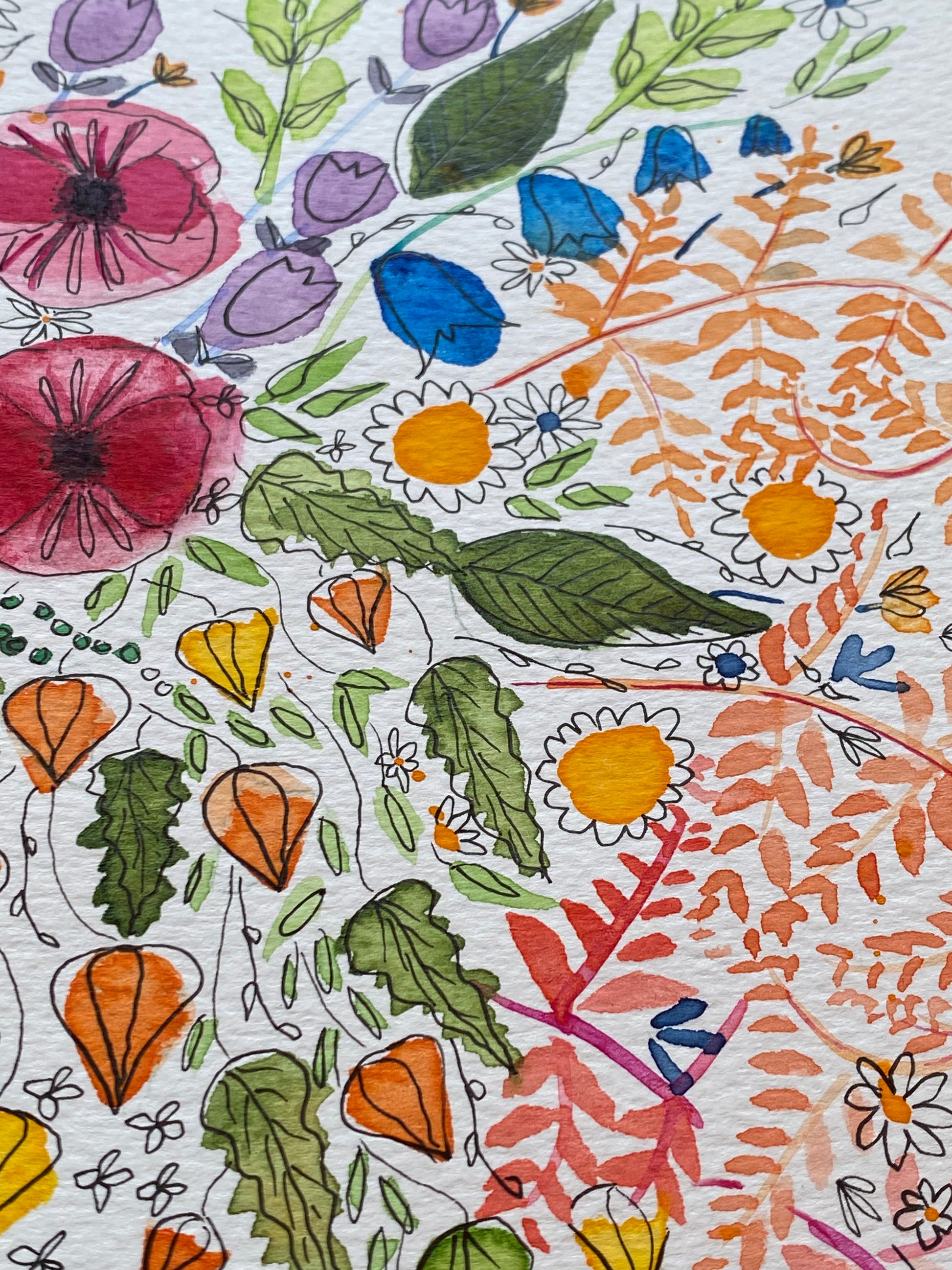 My paintings are created in layers of watercolour, gouache and ink. High-quality paints and 300gsm acid-free paper ensure the colours are vibrant and my experienced print provider has selected the best high gsm paper to reproduce this on so that the colours are matched closely to the original. Please note that some colours may look different on varying computer screens compared to natural light.