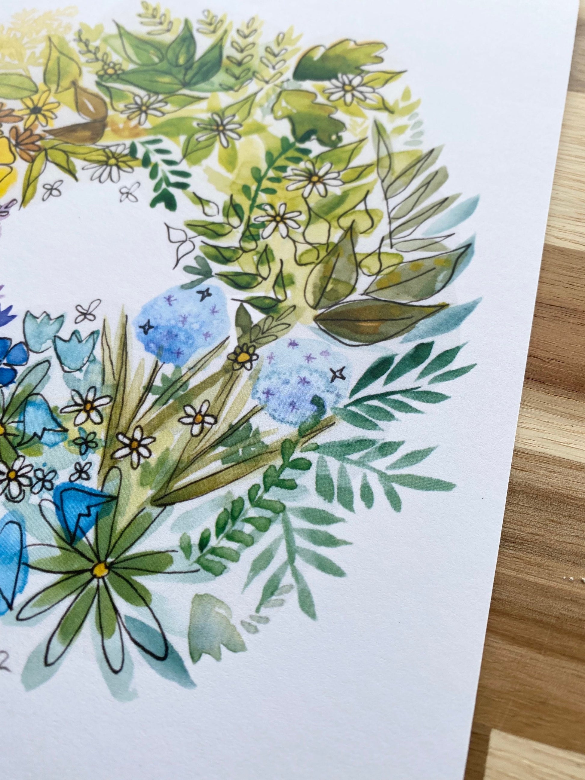 My paintings are created in layers of watercolour, gouache and ink. High-quality paints and 300gsm acid-free paper ensure the colours are vibrant and my experienced print provider has selected the best high gsm paper to reproduce this on so that the colours are matched closely to the original. Please note that some colours may look different on varying computer screens compared to natural light.