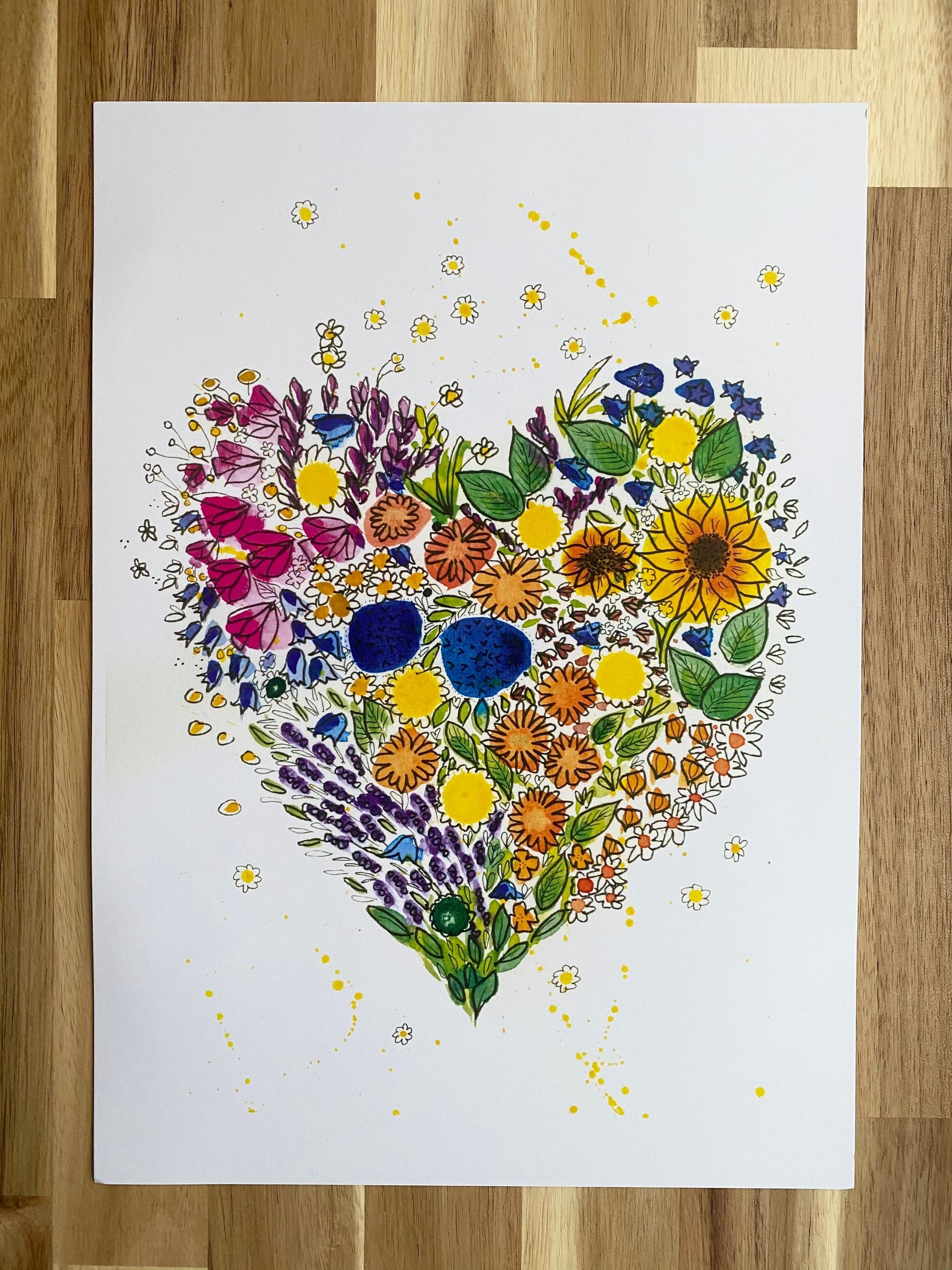 Flowery Heart is a single, A4 print of a watercolour, gouache and ink artwork. It is a bright and colourful piece, and makes a thoughtful anniversary gift.