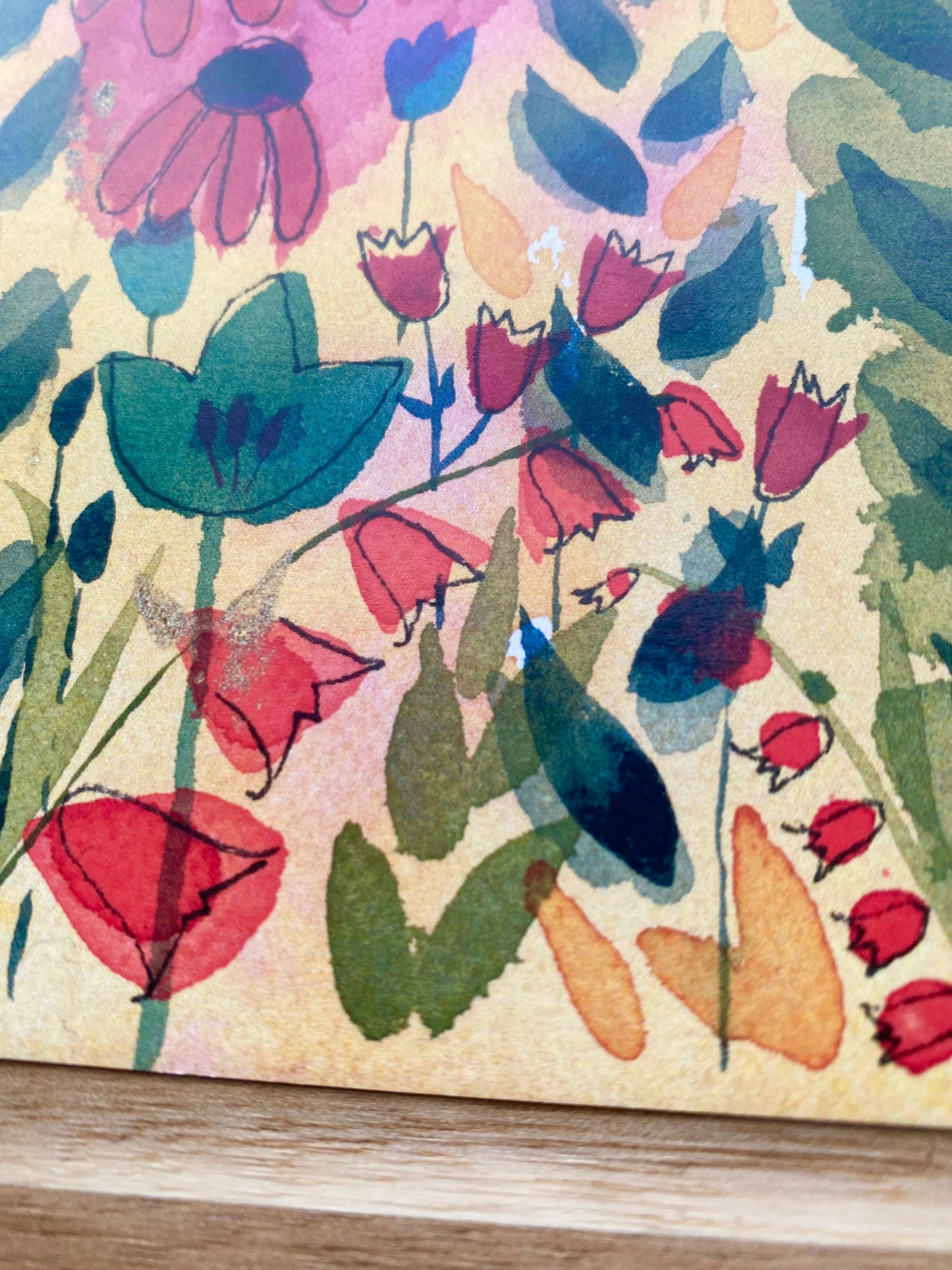 My paintings are created in layers of watercolour, gouache and ink. High-quality paints and 300gsm acid-free paper ensure the colours are vibrant and my experienced print provider has selected the best high gsm paper to reproduce this on so that the colours are matched closely to the original. Please note that some colours may look different on varying computer screens compared to natural light.