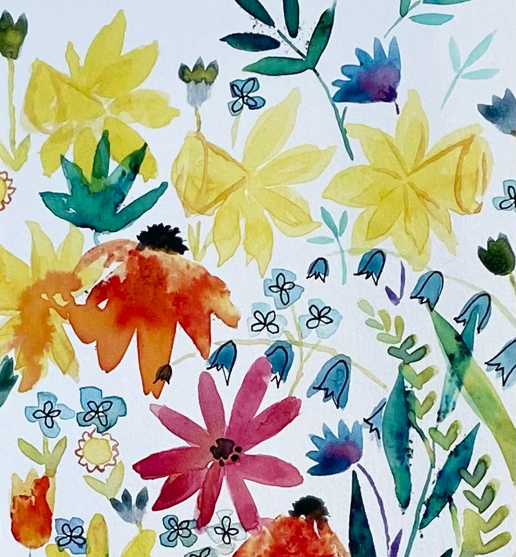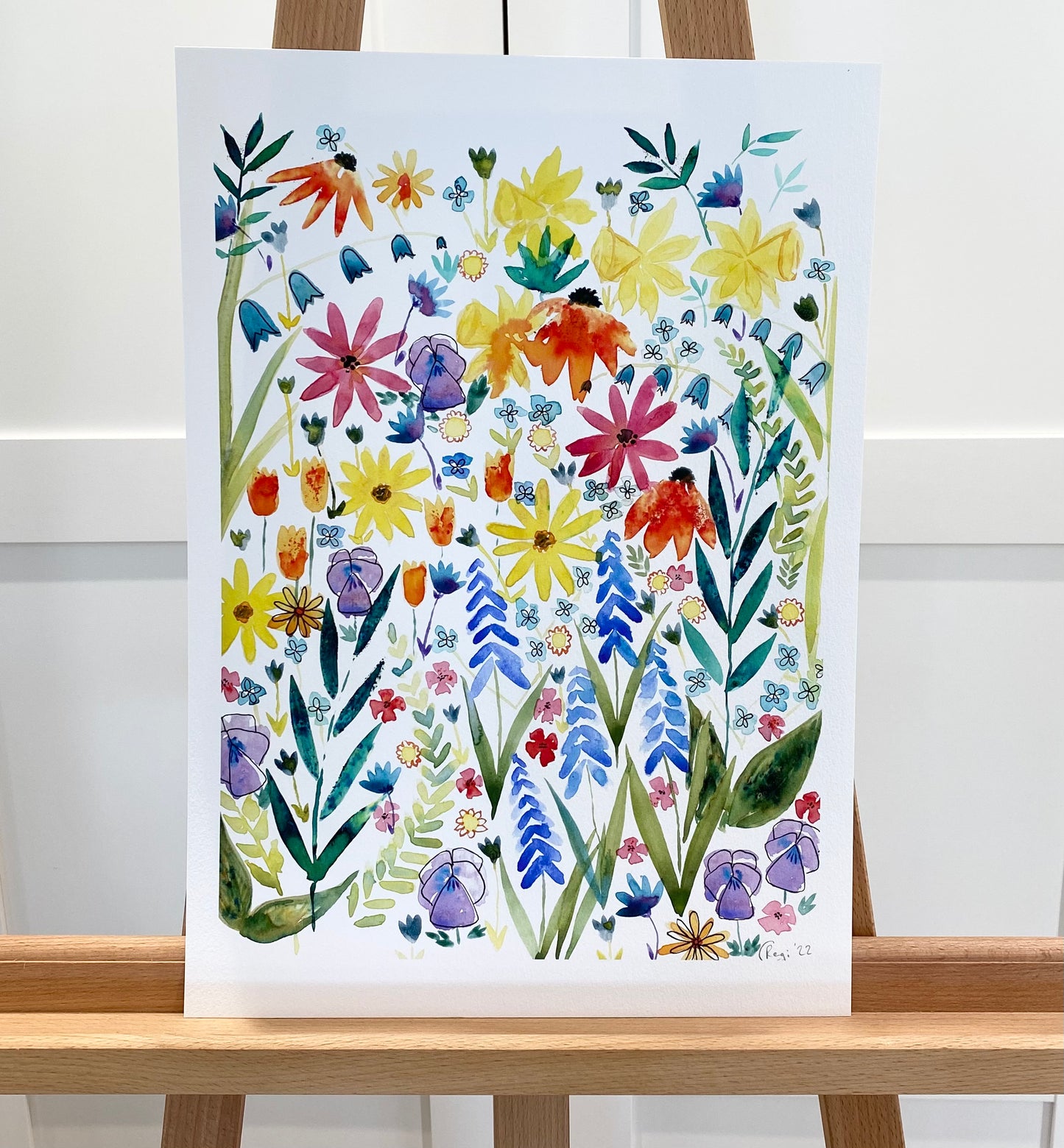 This artwork has been so popular that for this limited edition print I've taken the size up to A3 to make it even more striking. This mixed media watercolour is incredibly colourful and happy. The style of painting has a retro feel and this unique Giclee print process makes this print seem like an original.
