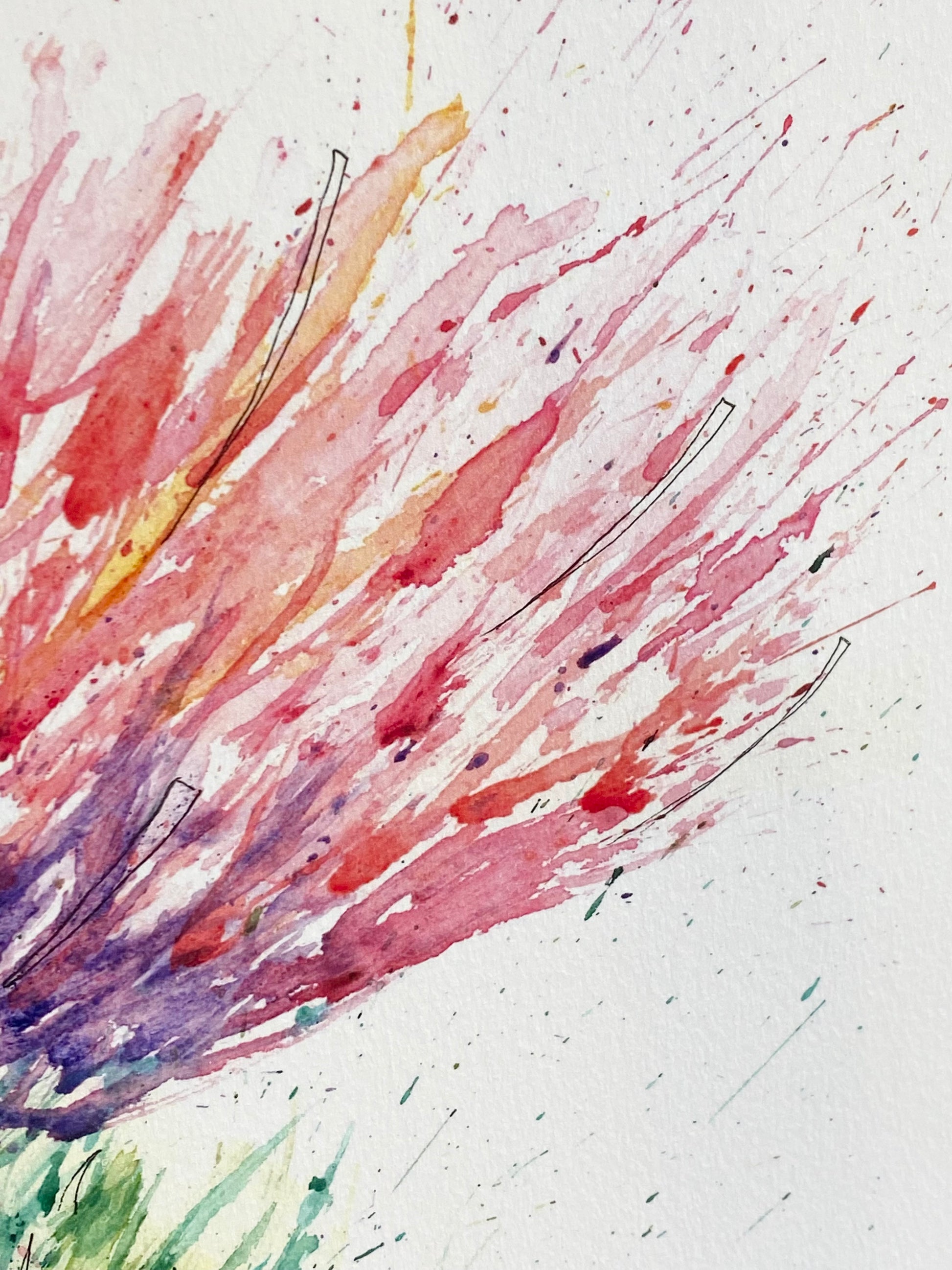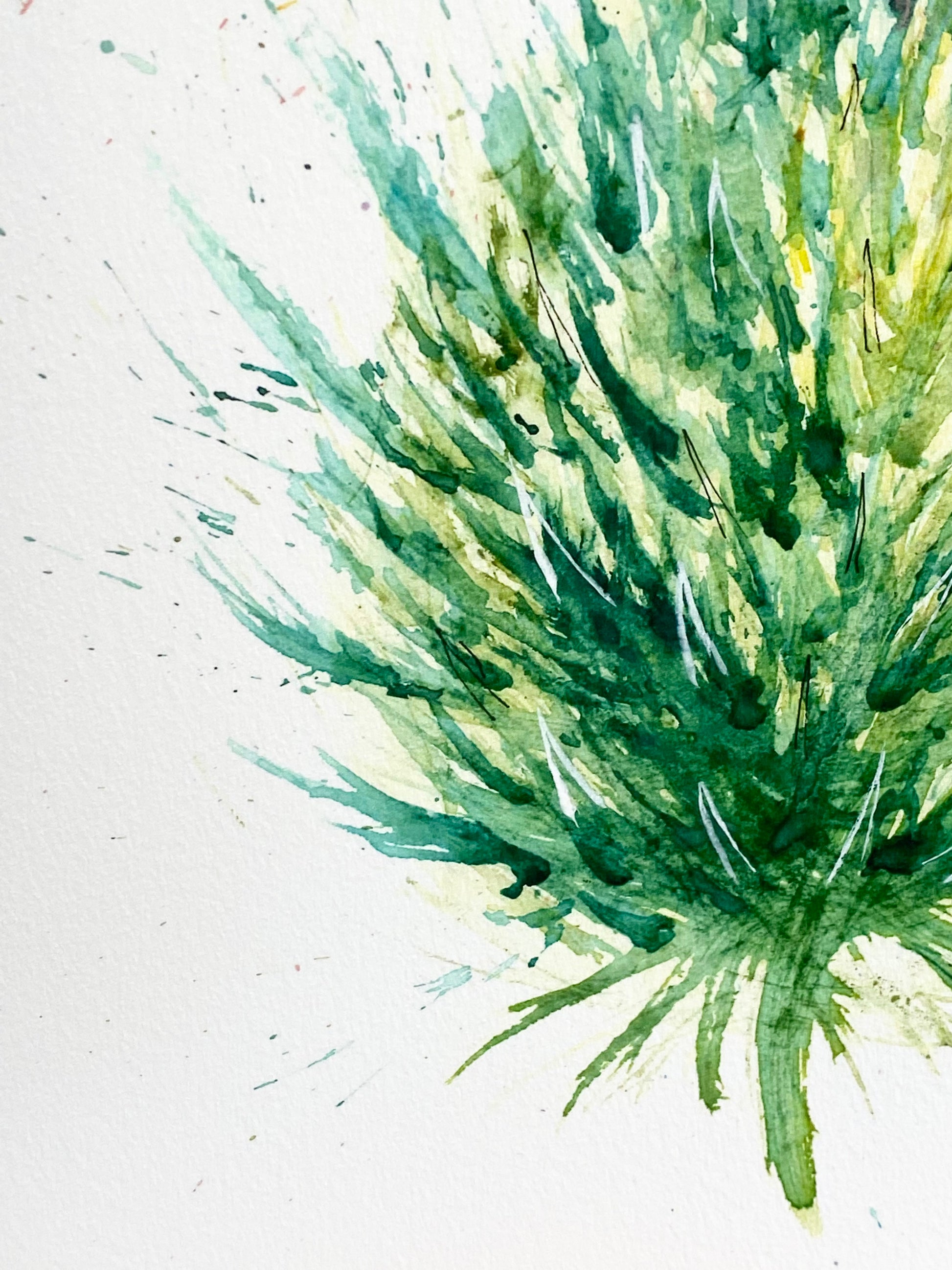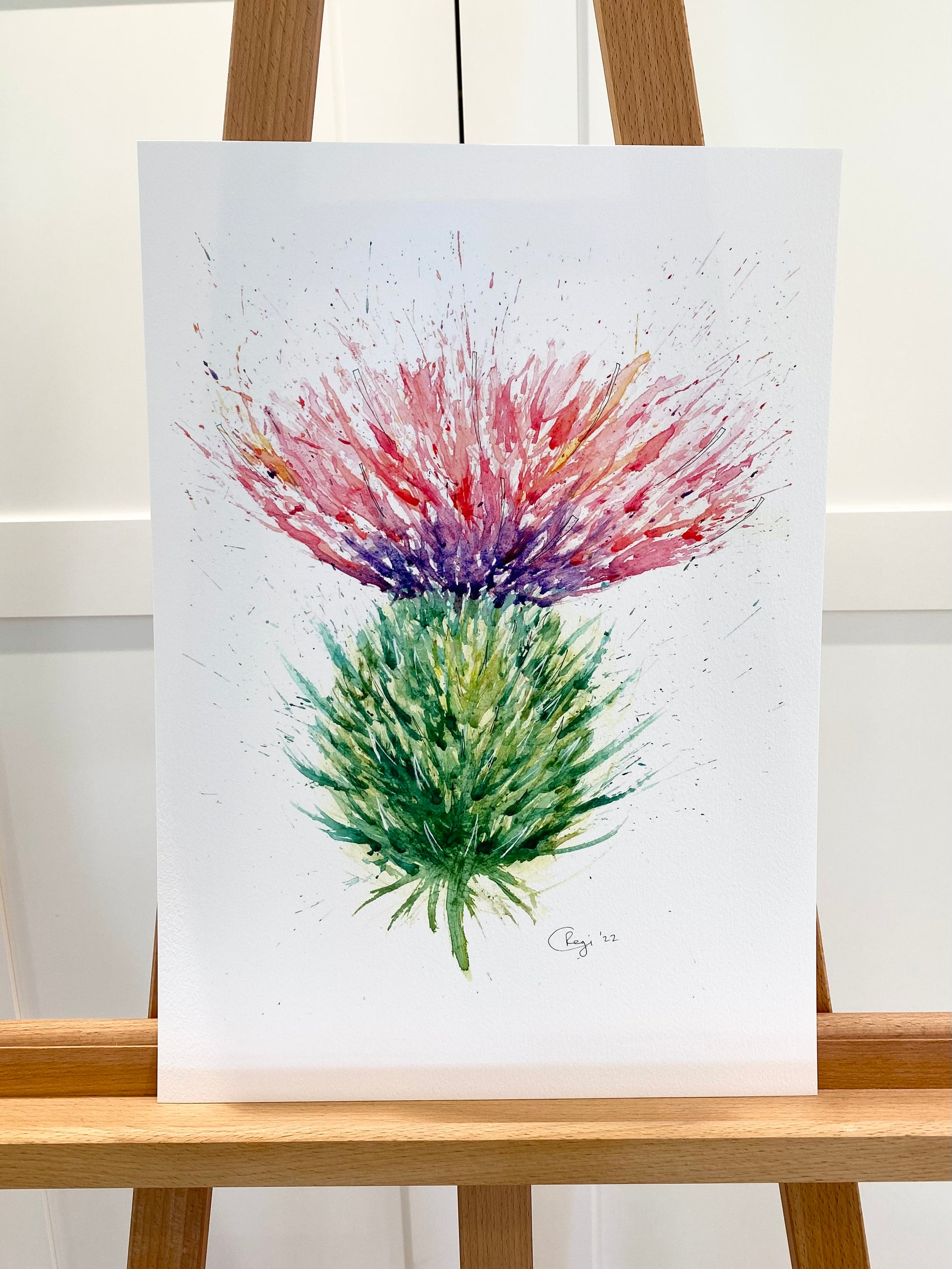 There are two thistles which can be bought individually or as a pair. They were created using watercolour paint and a quilt for the scratchy, splashy effect which works so well for this beautiful spiky plant. Zoom in close to see all the colours, these make a great gift for those with Scottish connections or who love wildflowers!