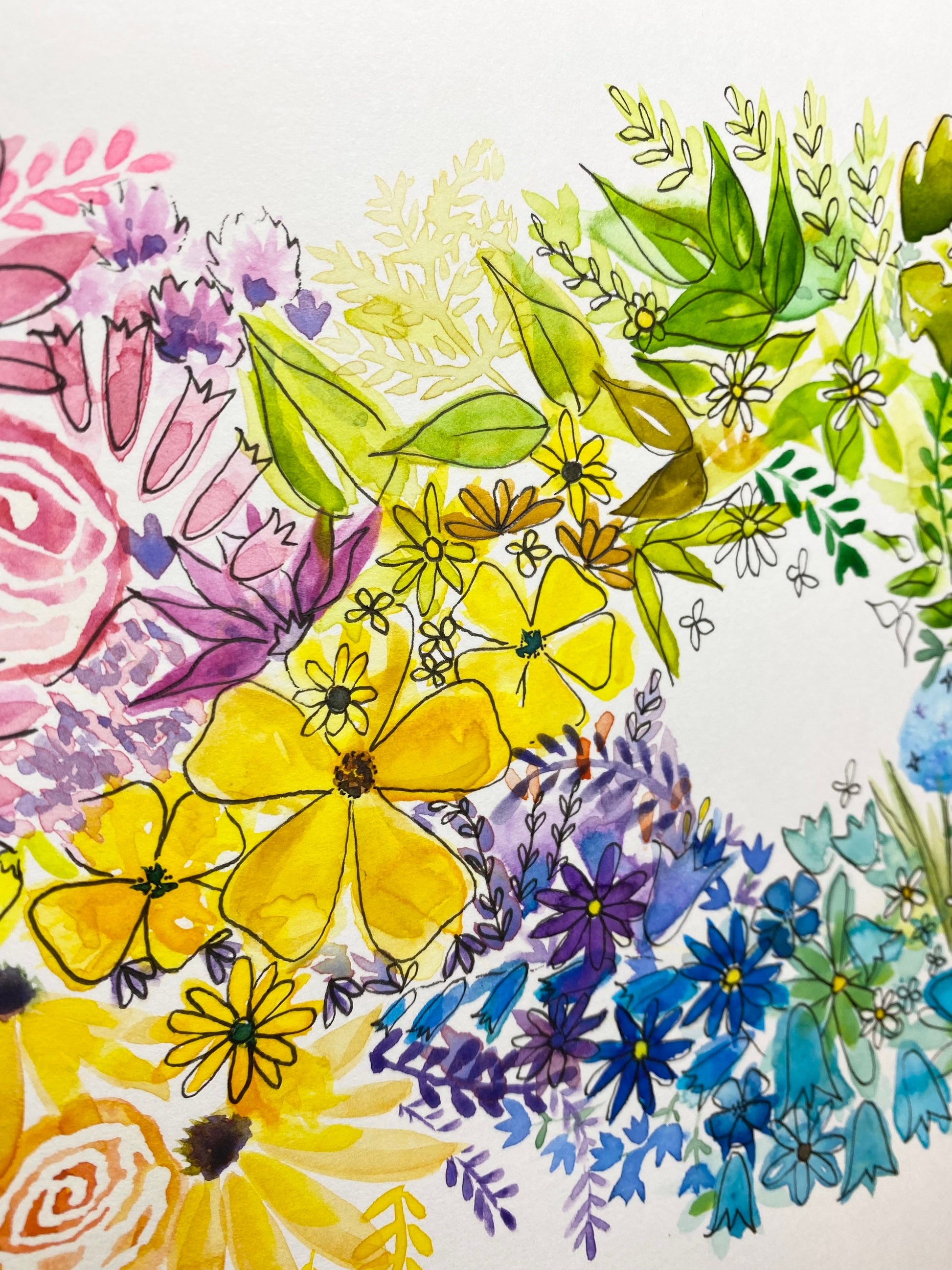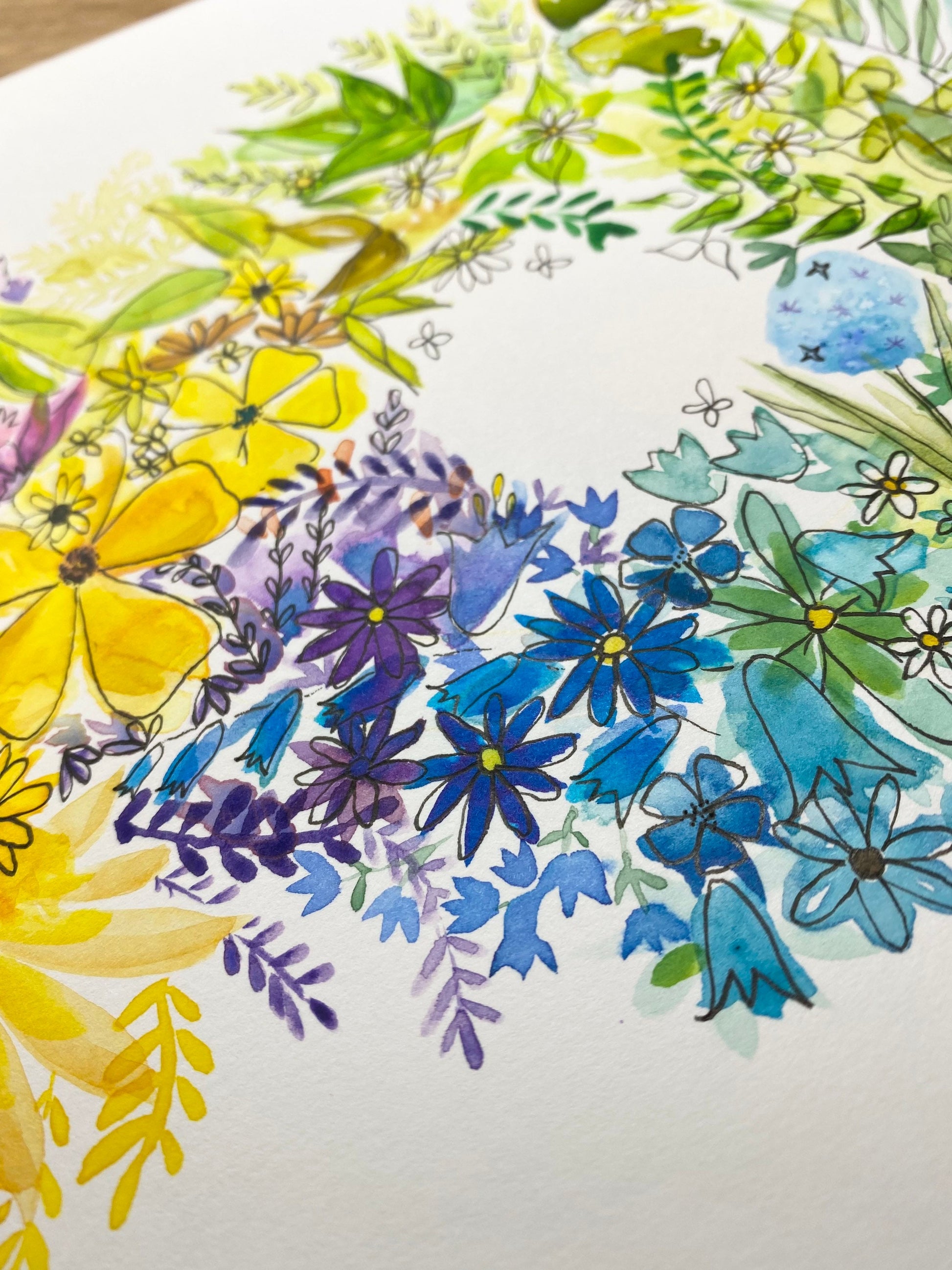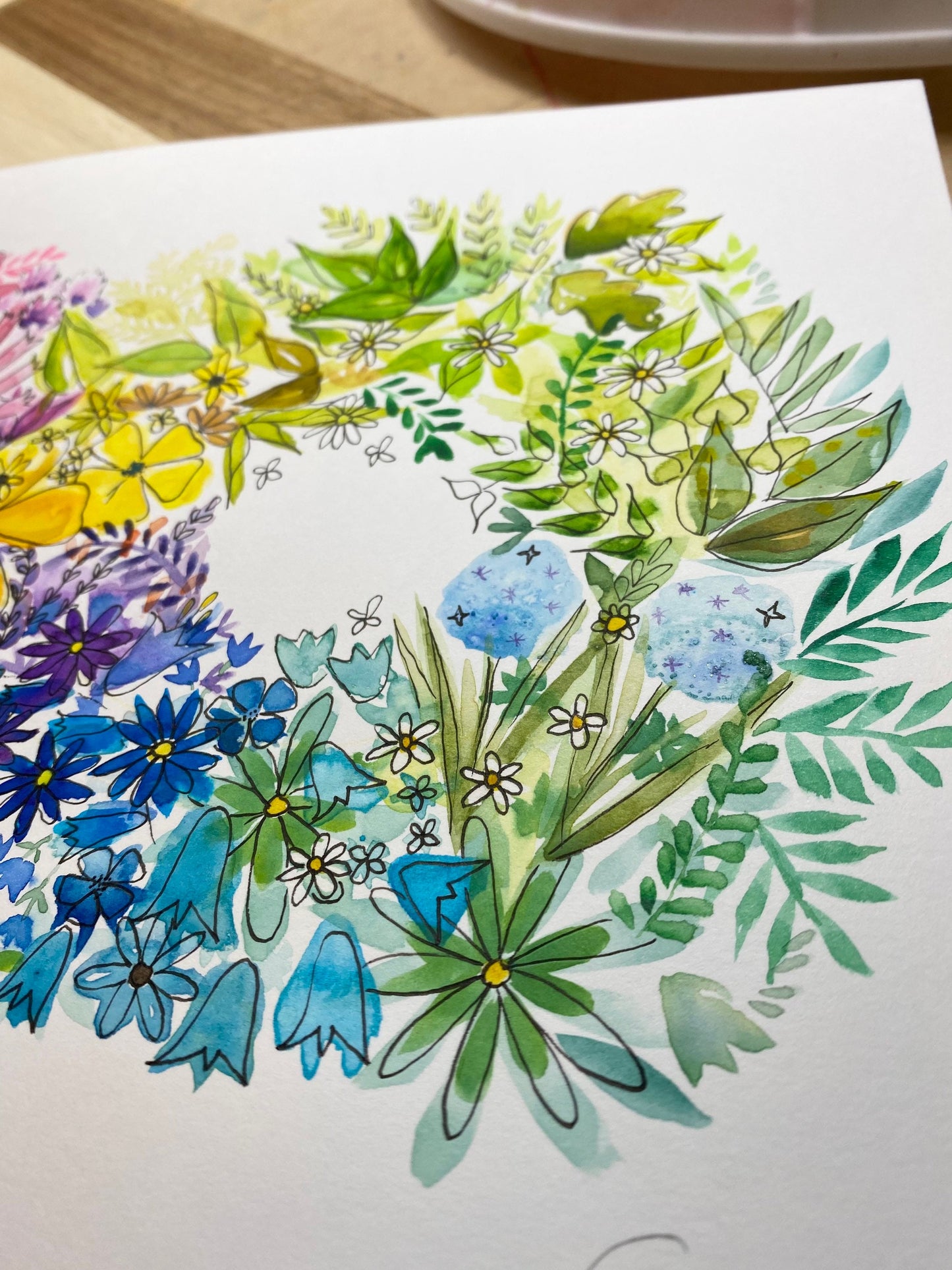 My paintings are created in layers of watercolour, gouache and ink. High-quality paints and 300gsm acid-free paper ensure the colours are vibrant and I scan images at a high resolution on a specialist scanner so that the colours are matched closely to the original. Please note that some colours may look different on varying computer screens compared to natural light.