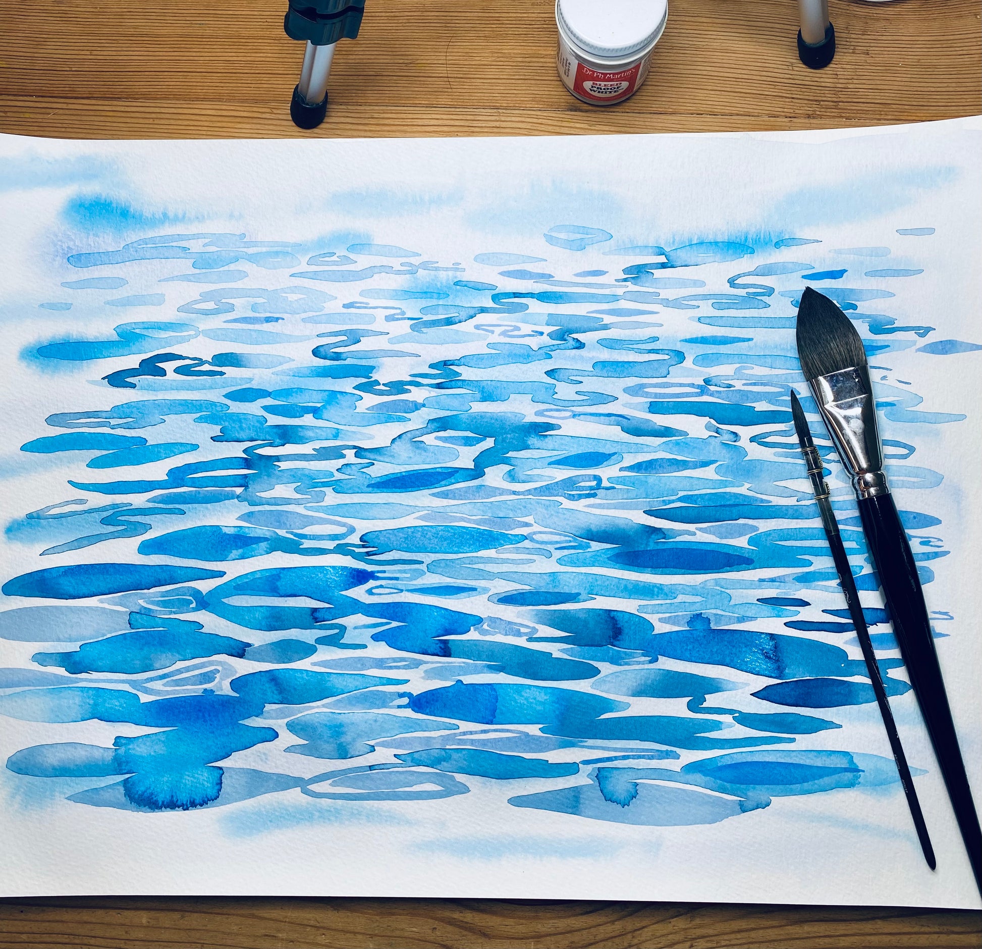 'Ocean waves' breaks down how to build up a shiny water surface which has small waves or ripples. Really mindful and low pressure, this is a simple technique but will take practice to get it flowing easily. Don't worry if it takes a few tries, this sessions is great to repeat with different shades of blues and greens to achieve tropical seas, grey stormy oceans or deep blue lakes. You can even combine it with the pebbles tutorial to start to build a beach!