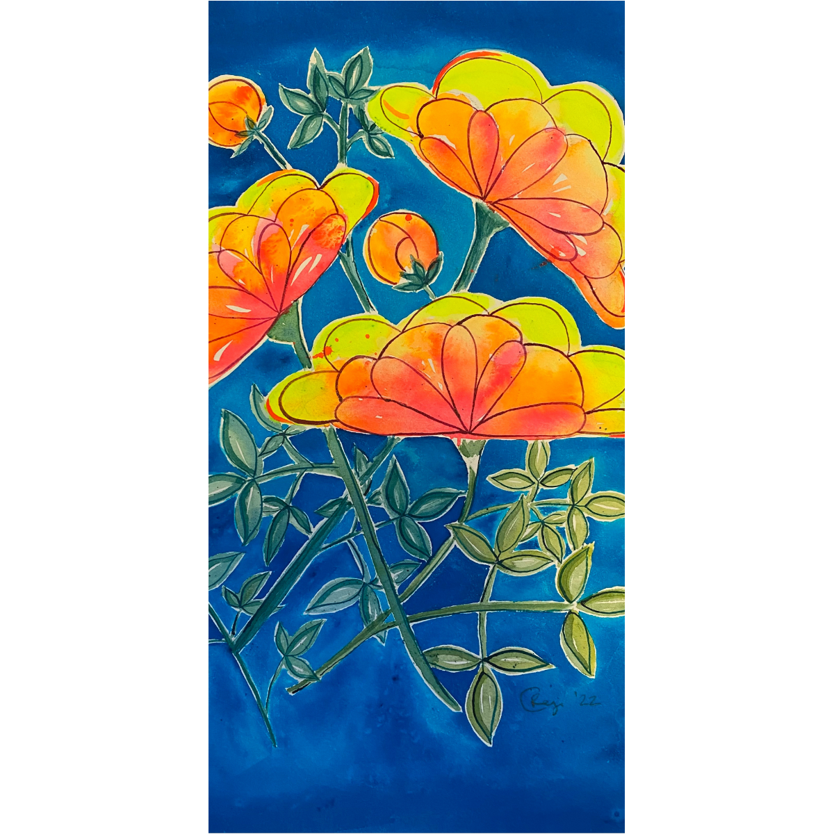 My paintings are created in layers of watercolour, gouache and ink. High-quality paints and 300gsm acid-free paper ensure the colours are vibrant and my experienced print provider has selected the best high gsm paper to reproduce this on so that the colours are matched closely to the original. Please note that some colours may look different on varying computer screens compared to natural light.