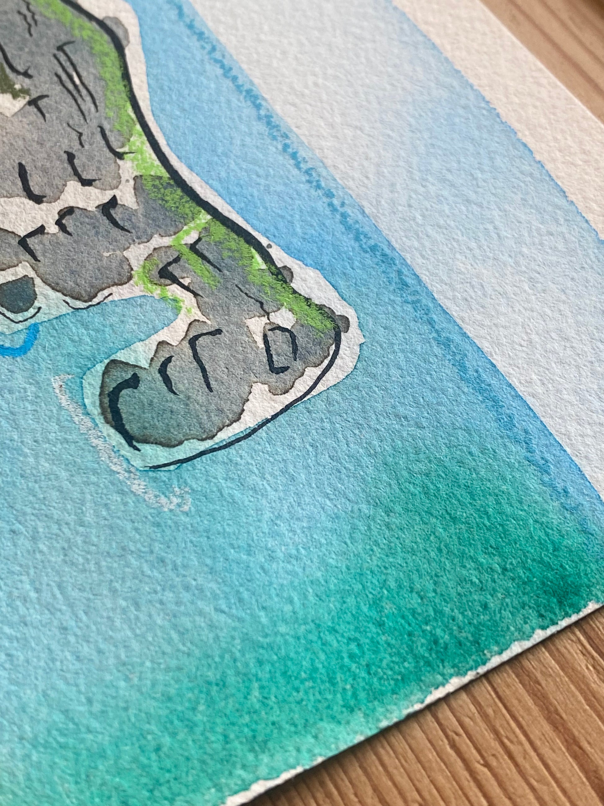 My paintings are created in layers of watercolour, gouache and ink. High-quality paints and 300gsm acid-free paper ensure the colours are vibrant. Please note that some colours may look different on varying computer screens compared to natural light.