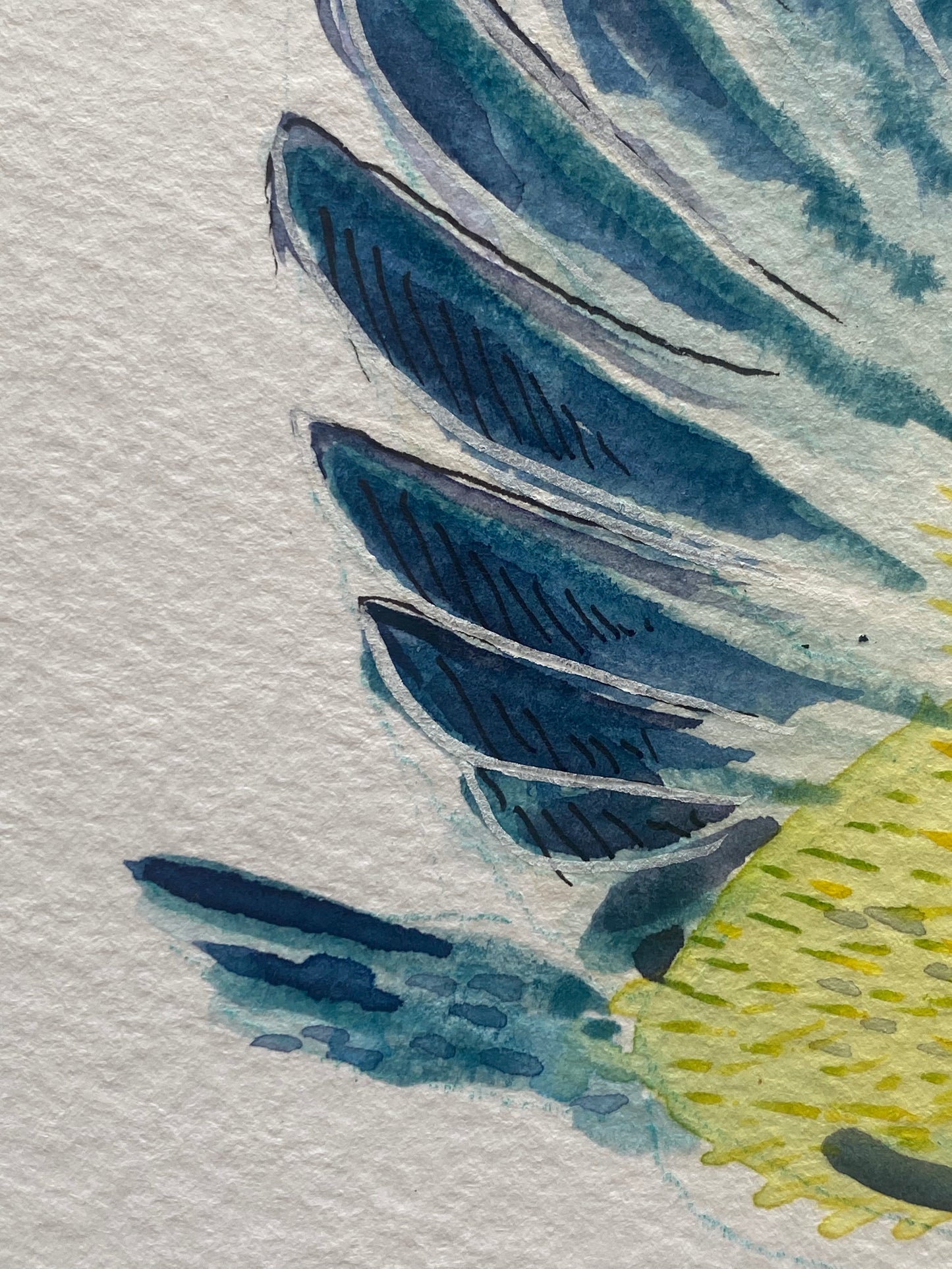 My paintings are created in layers of watercolour, gouache and ink. High-quality paints and 300gsm acid-free paper ensure the colours are vibrant. Please note that some colours may look different on varying computer screens compared to natural light.