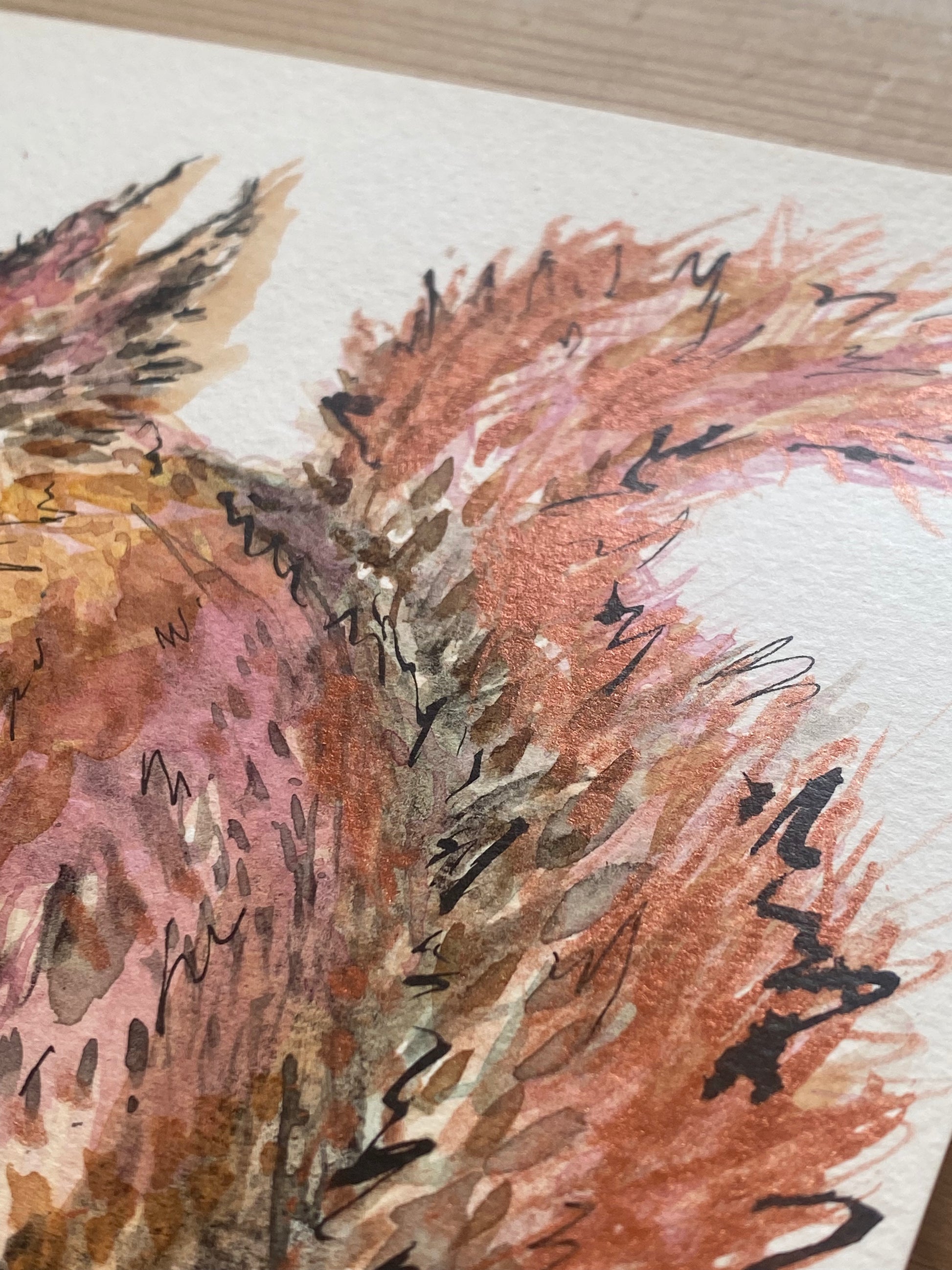 My paintings are created in layers of watercolour, gouache and ink. High-quality paints and 300gsm acid-free paper ensure the colours are vibrant. Please note that some colours may look different on varying computer screens compared to natural light.