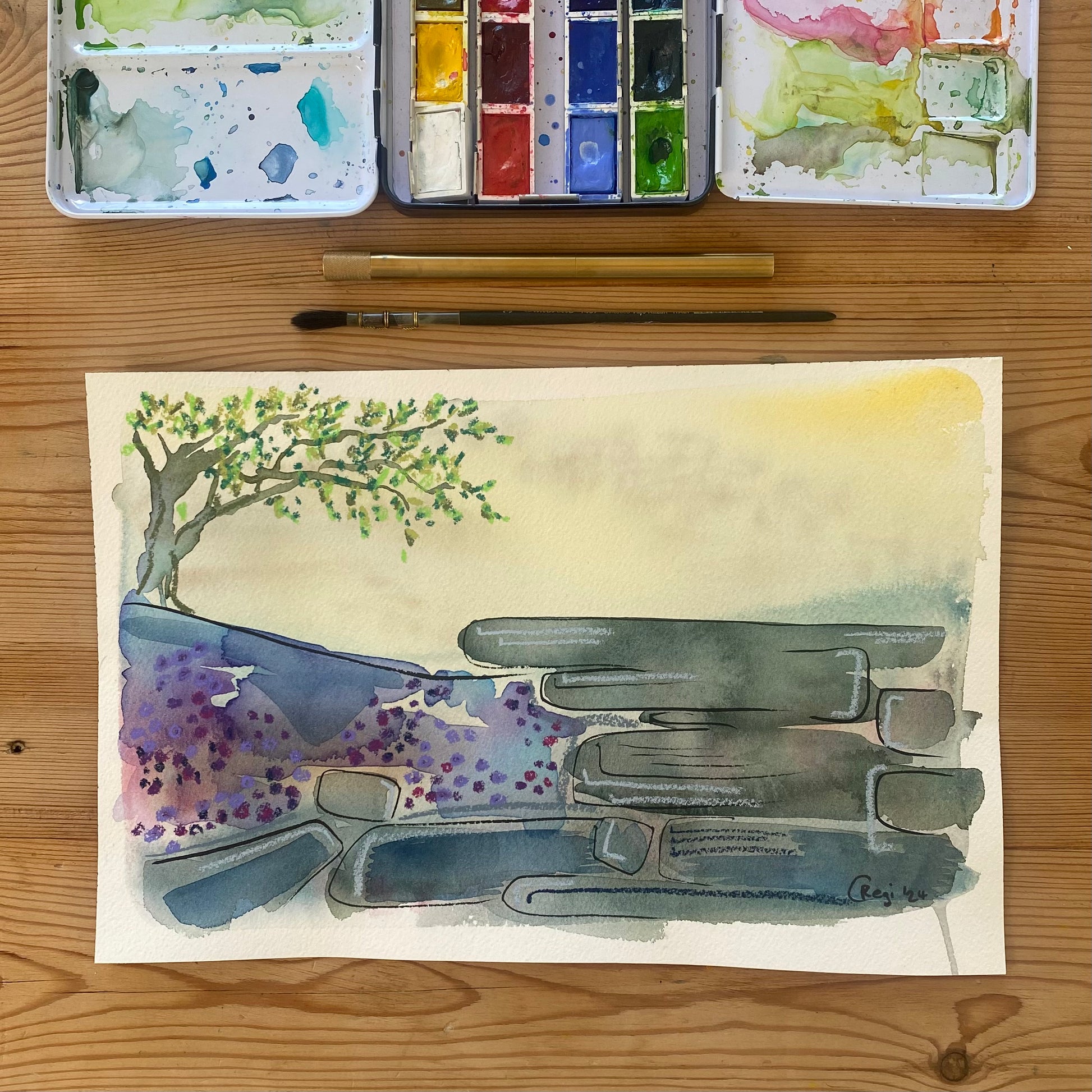 I select high quality paints for my original watercolours based on vibrancy and lightfastness. It is best not to hang any original watercolour in direct sunlight to maintain the colours at their brightest.