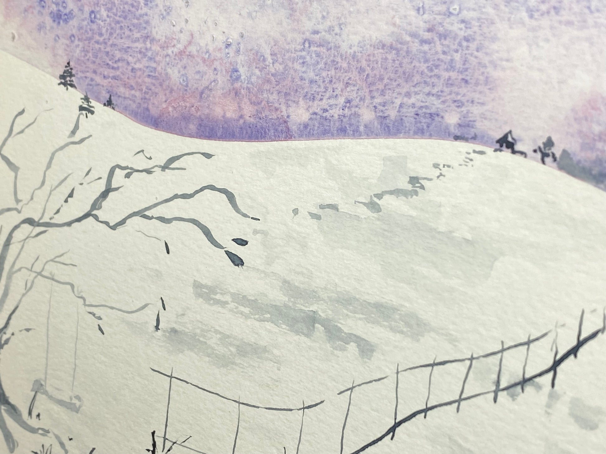My paintings are created in layers of watercolour, gouache and ink. High-quality paints and 300gsm acid-free paper ensure the colours are vibrant and my experienced print provider has selected the best high gsm paper to reproduce this on so that the colours are matched closely to the original. Please note that some colours may look different on varying computer screens compared to natural light.