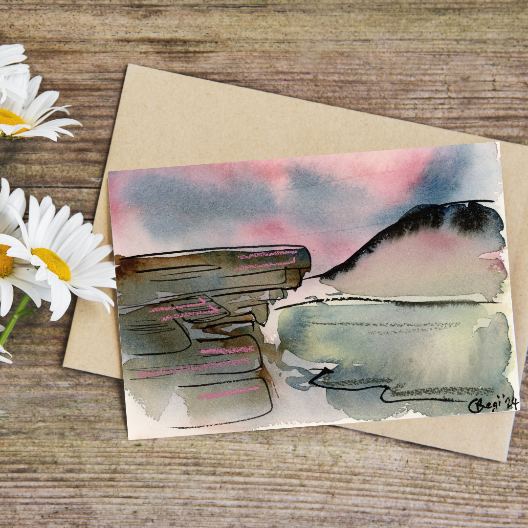 Blank A6 greetings card with a print of one of the abstract Peak District series.