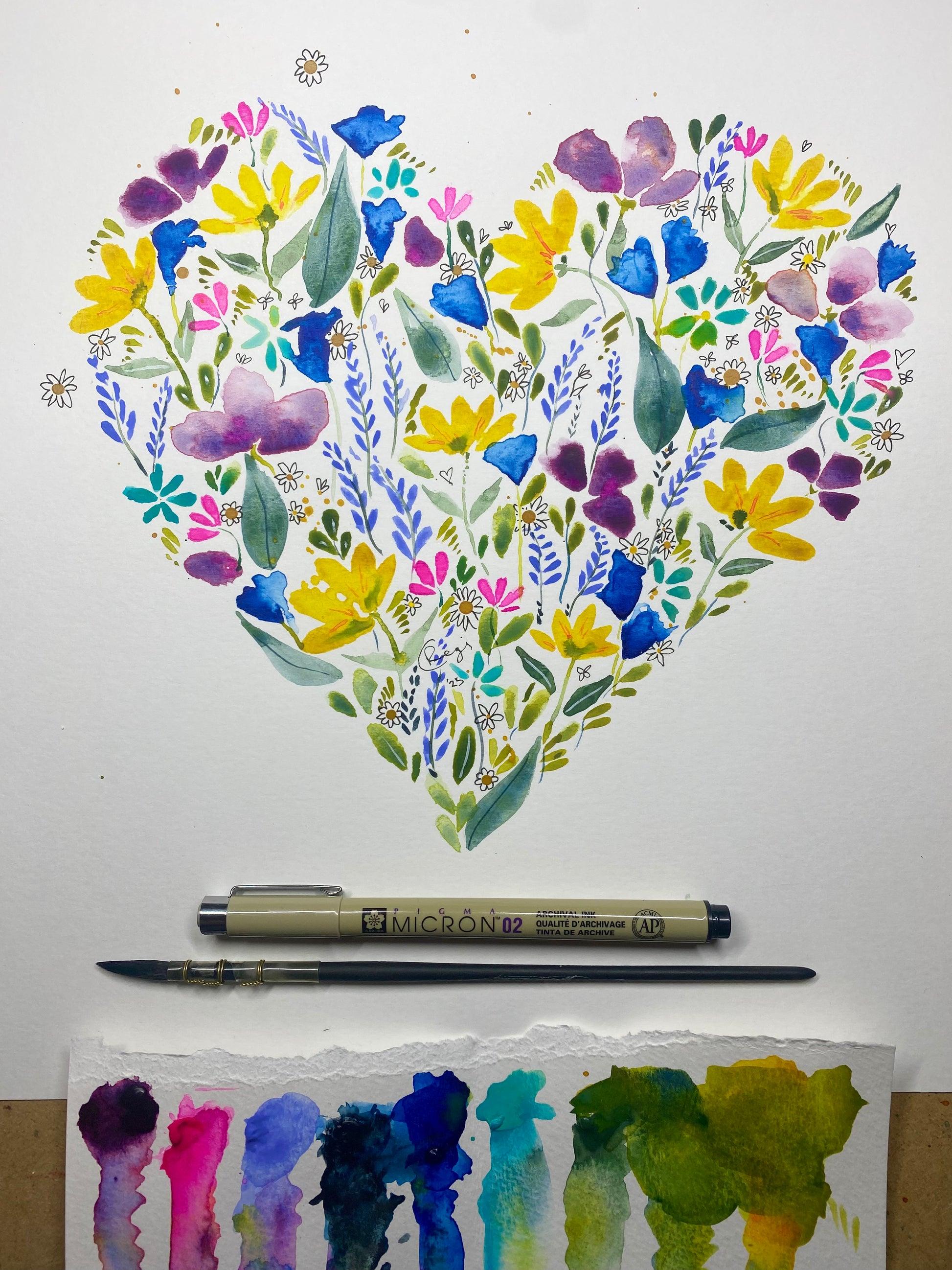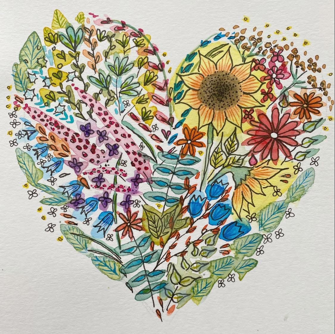 By the end of this 60-minute workshop, we will have covered my imperfect heart design as well as discussing multiple ways of making the artwork your own. I will answer all questions as we go any you can contact me afterwards to show me what you make! It can be used to create your own cards, carry out quiet-brain time, or build a stunning piece of artwork.