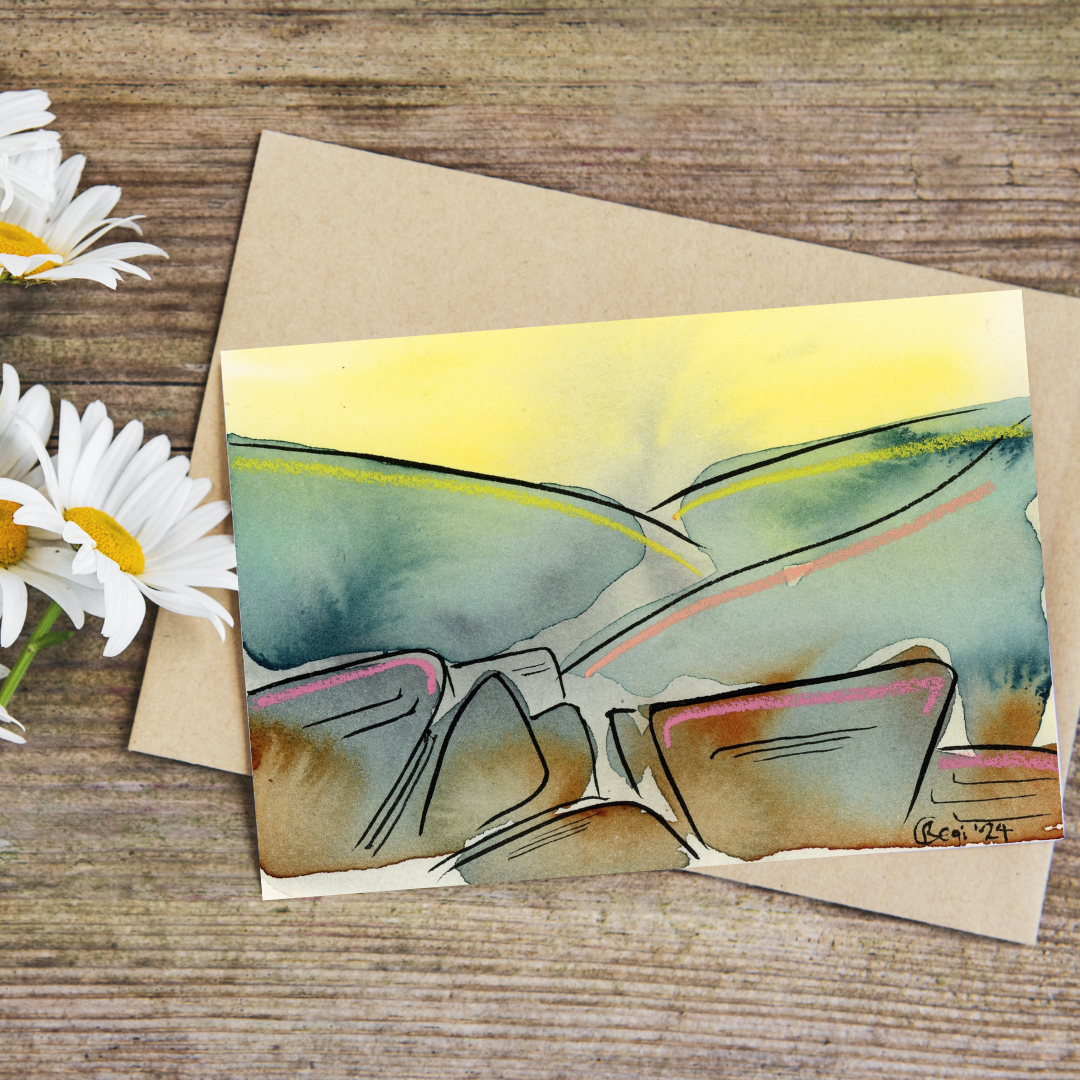 Cards and prints will be sent wrapped in a compostable cellophane wrapper to protect during transit, and posted in a hardback envelope.