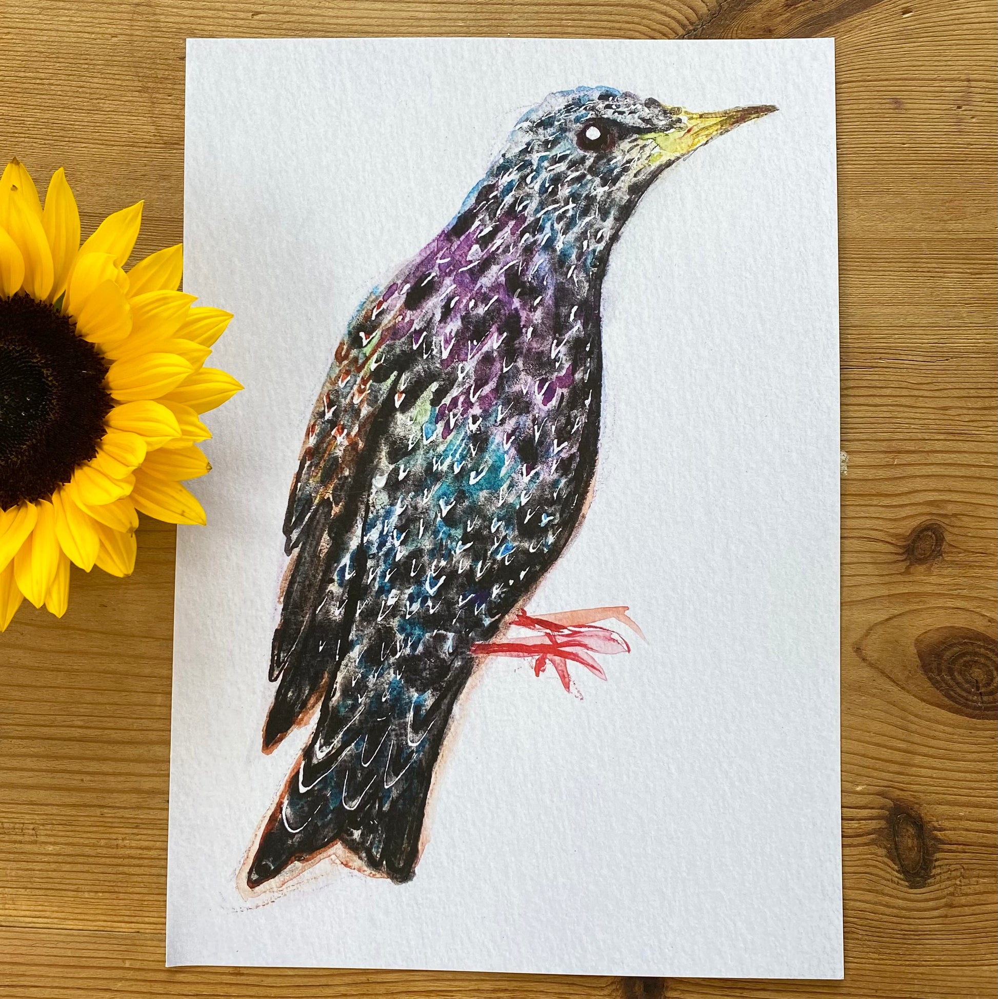 This detailed painting of a starling uses Indian ink and watercolours to show all the patterns and incredible colour flashes of this British bird.