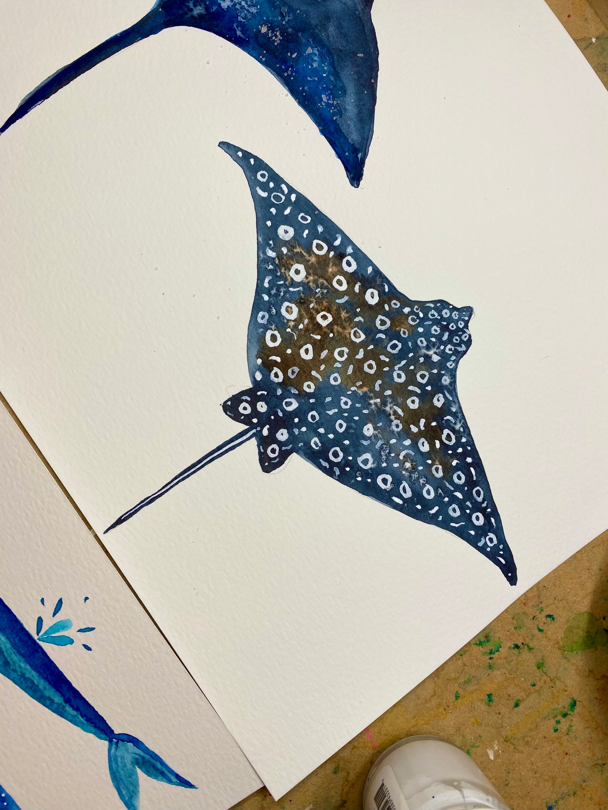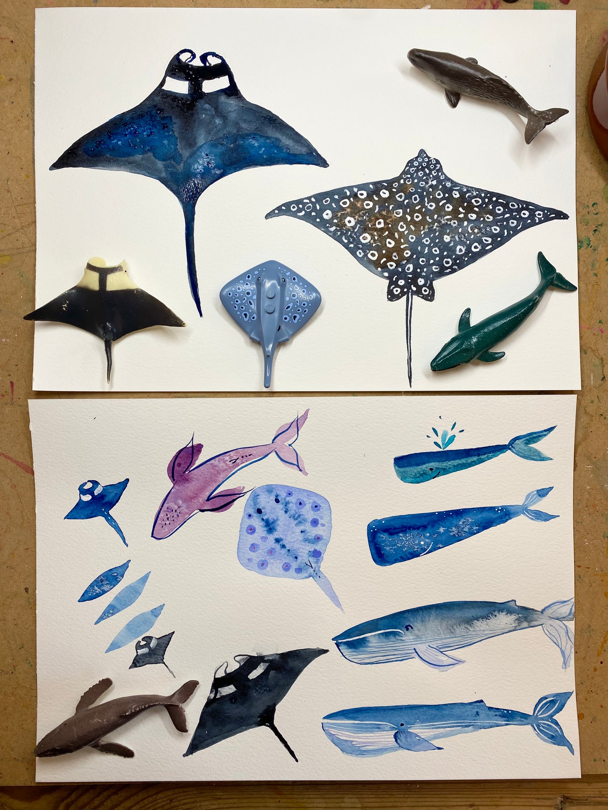 I love painting underwater scenes in a really illustrative style, but I also love looking closely at photos of the animals and finding little details to use in my painting. In addition we'll look at textures, styles, how to work in layers and always antiperfection.