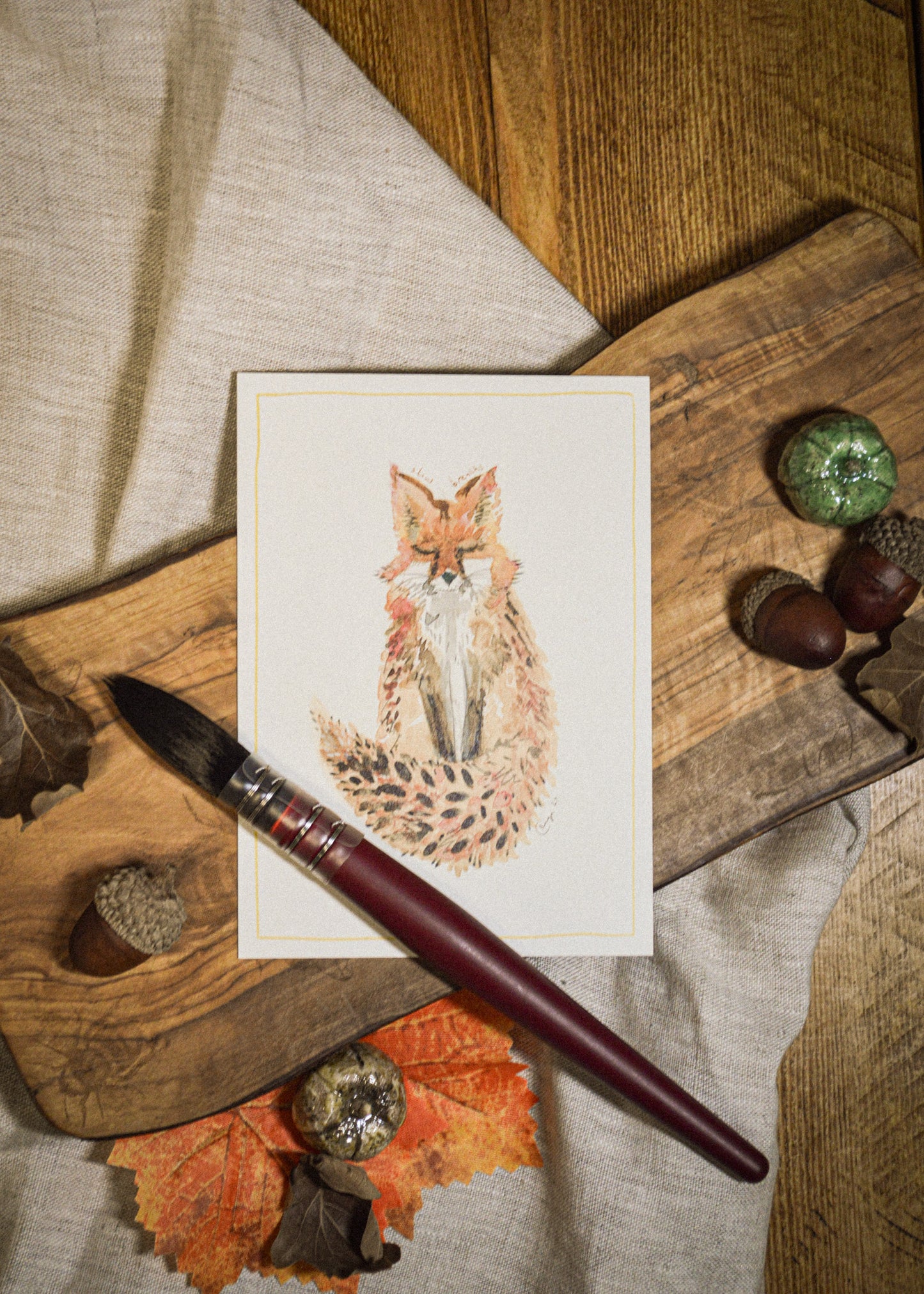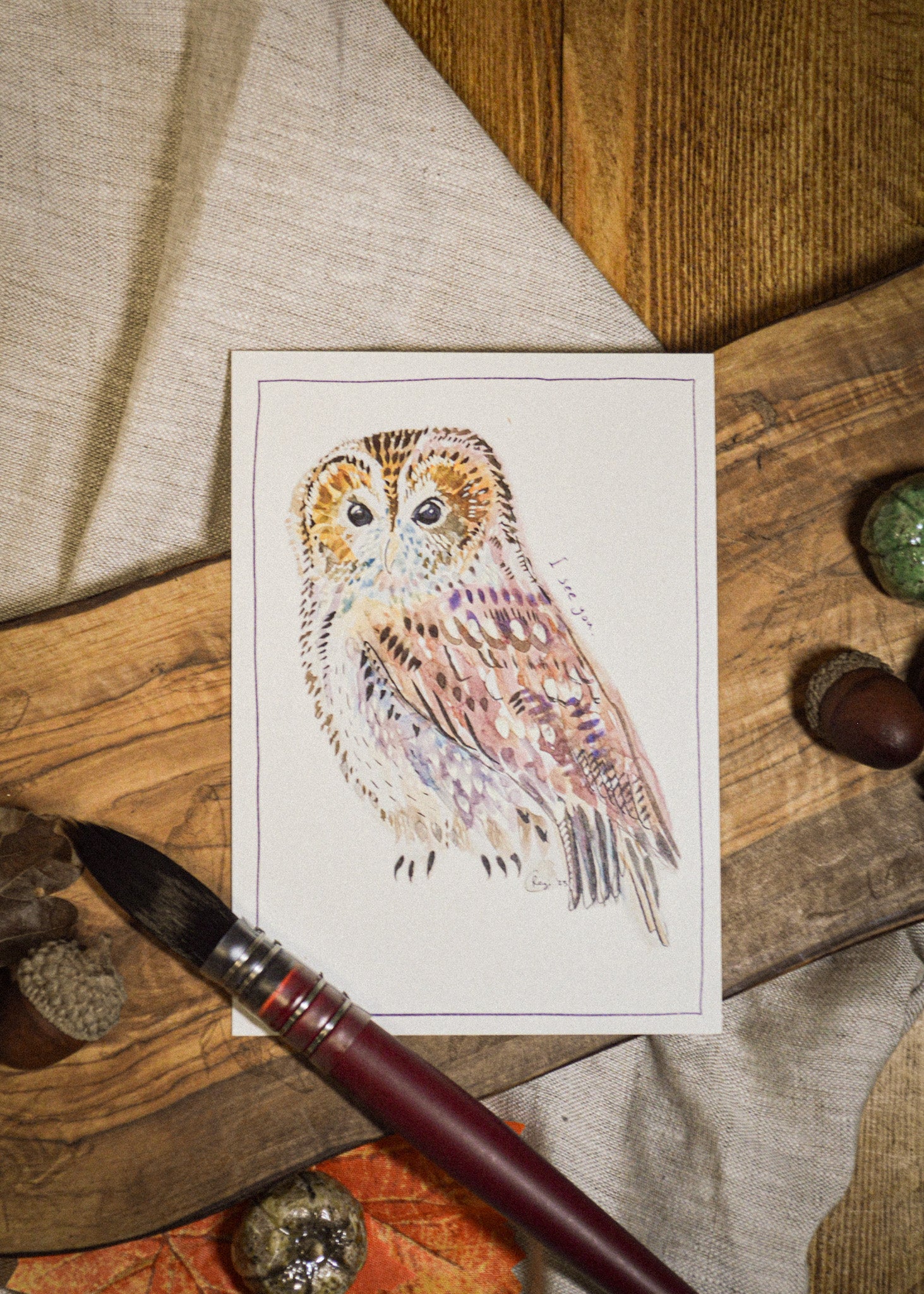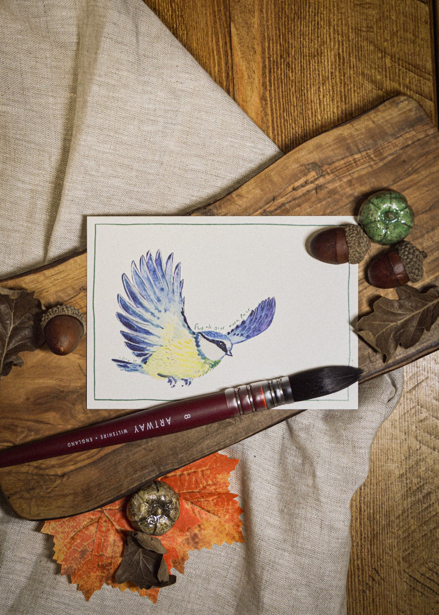 My paintings are created in layers of watercolour, gouache and ink. High-quality paints and 300gsm acid-free paper ensure the colours are vibrant and my experienced print provider has selected the best item to reproduce this on so that the colours are matched closely to the original. Please note that some colours may look different on varying computer screens compared to natural light.