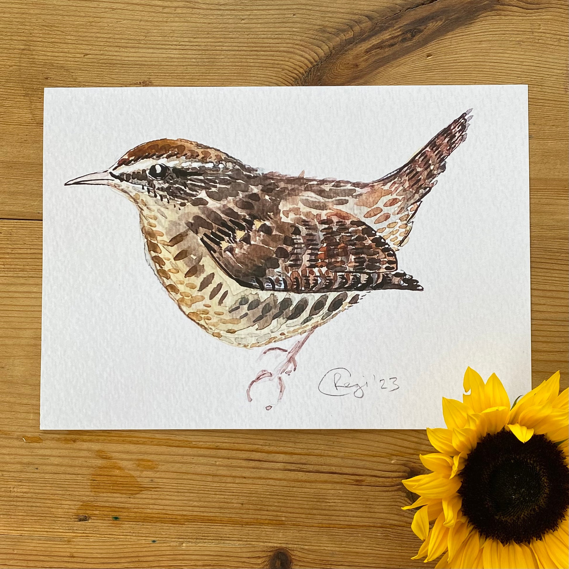 This detailed painting of a wren uses Indian ink and watercolour to show all the patterns and warm natural shades of this British bird.